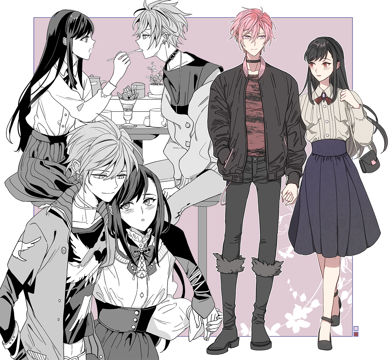 He is rather stoic and blunt towards others with sharp words and actions, he expects nothing but the best from his band. Behind closed doors, however, he is incredibly sweet and affectionate solely towards his girlfriend who he loves dearly. He goes through great lengths to avoid showing his sweeter side by avoiding any public displays of affection towards her. He tends to be quite physically clingy to his girlfriend, as he is always asking for cuddles and kisses much to her shyness (which he finds cute). He is also quite protective of her, as he has yet to introduce her to his band members properly, and refuses to talk about anything regarding her to others.